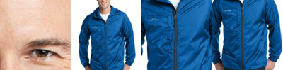 Wind was the inspiration for this compact layer—and it packs down into a pocket, making it easy to carry wherever you go. Hood with drawcord and toggles for adjustability, contrast reverse coil zipper, underarm vents, packable zippered chest pocket, front unzippered pockets, elastic cuffs and an open hem. Contrast Eddie Bauer logo on right chest. Made of 100% nylon.