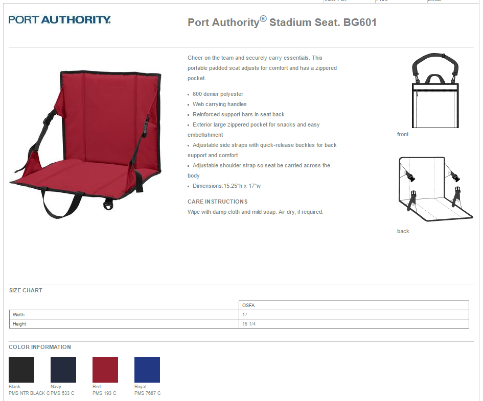 SanMar BG601 SanMar Port Authority® Stadium Seat. BG601