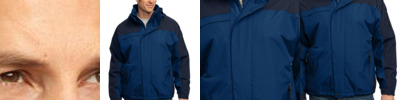 - Inner jacket has a cadet collar, cuff binding, front slash pockets and open hem