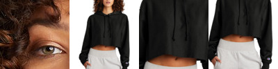 12-ounce, 82/18 cotton/poly fleece 78/22 cotton/poly (Oxford Grey) 60/40 cotton/poly (Charcoal Heather) Reverse Weave cross-grain cut resists shrinkage Two-ply hood with dyed-to-match drawcords Oversized, relaxed fit with dropped shoulder sleeves 1x1 rib knit underarms, sides and sleeve cuffs Cut-off hem with stitched edge Embroidered Champion C logo at left cuff Woven back neck label