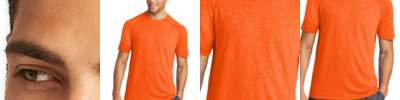 A soft cotton hand merges with color-locking, moisture-wicking performance in this tee that also has a matte finish. 4.7-ounce, 100% spun polyester jersey with PosiCharge technology Soft cotton hand Removable tag for comfort and relabeling Dyed-to-match neck taping Set-in sleeves Due to the nature of 100% spun polyester fabrics, special care must be taken throughout the decoration process when heat is applied for curing. We recommend a low cure ink or heat transfer not to exceed 300ÿ¿ÿ¿ÿ¿ÿ° during application. Consult with your decorator or materials supplier.