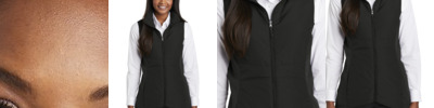 Insulation and stretch soft shell side panels make this vest a versatile, flattering and cozy cold-weather layer. Can be zipped in and secured by snap attachments inside an outer Collective layer 100% polyester woven shell 100% polyester knit bonded to a water-resistant film insert and a 100% polyester microfleece lining at side panels and under arms 100% polyester printed lining with insulation behind the outer woven shell Slightly longer length Zip-through cadet collar Molded center front zipper Front and back waist details Stretch side panels Open front pockets Port Pocket for decoration access Open hem Tulip hem