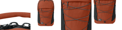 Designed for a comfortable carry and built with functionality in mind, this pack stands ready for any urban or trail adventure. 900D polyester Spacious zippered main compartment with laptop sleeve Interior zippered mesh pockets Zippered office compartment Adjustable bungee strapping across center front Zippered top pocket with decoration access Generous elasticized side mesh pockets Padded top haul handle Padded air mesh back with trolley pass through Padded ergonomic shoulder straps with adjustable sternum strap Corded zipper pulls Woven Eddie Bauer logo patch label on lower left side Laptop sleeve dimensions: 14.25'h x 11.125'w; fits most 17' laptops Dimensions: 18'h x 10.25'w x 8.25'd Capacity: 1,342 cu. in./22 L Weight: 1.7 lbs./0.8 kg Note: Bags not intended for use by children 12 and under.