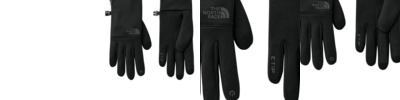 A favorite for chilly morning runs or any cold-weather commute, these sustainable, touchscreen-compatible gloves are built for warmth and comfort. 93/7 recycled polyester/elastane double knit fleece Four-way stretch fleece Silicone gripper dot print on palm for better grip Etip compatibility on palm for five-finger touchscreen capability 5 Dimension Fit ensures consistent sizing Radiametric Articulation helps keep hands in their natural, relaxed position Pairing clip helps keep gloves together when not being worn Heat transfer The North Face logo on top of glove Medium: 8 to 8.5-inch hand circumference Large: 9 to 9.5-inch hand circumference X-Large: 9.5+-inch hand circumference