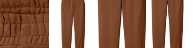 - Stretchable, spandex-reinforced, rib knit cuffs and waistband