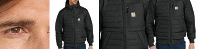 Tougher than the weather, this water- and wind-resistant jacket has insulation for warmth and is built for enhanced durability. 1.8-ounce, 100% nylon CORDURA ® shell Rain Defender ® durable water repellent (DWR) Wind Fighter ® technology tames wind Nylon lining quilted to 120-gram, 100% polyester insulation for warmth Adjustable hood Reverse coil center front zipper Left chest zippered patch pocket Two hand pockets with hidden snap closures Two interior pockets: one zippered, one hook and loop closure Rib knit cuffs and hem Carhartt-strong, triple-stitched main seams Carhartt label sewn on chest pocket Relaxed fit