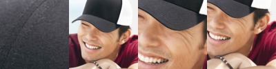 - Heavy duty poly/cotton solid front with mesh back